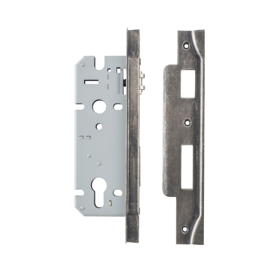 Euro Roller Lock Rebated Distressed Nickel 45mm