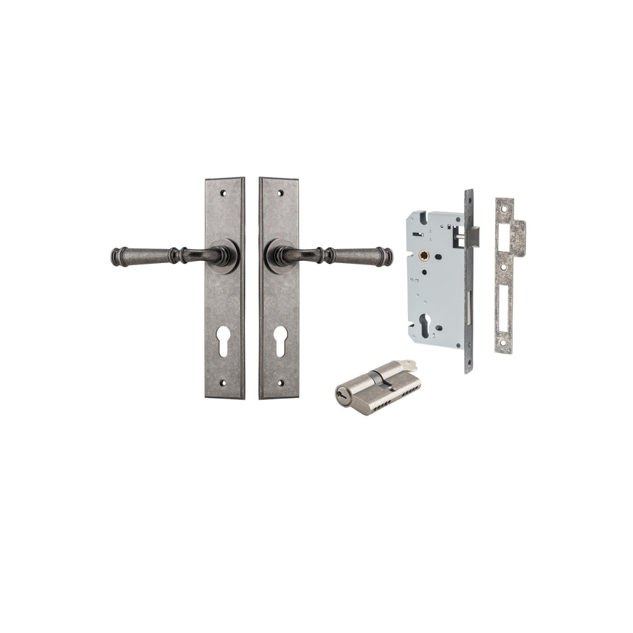 Verona Lever Rectangular Distressed Nickel Entrance Kit - Key/Thumb Turn